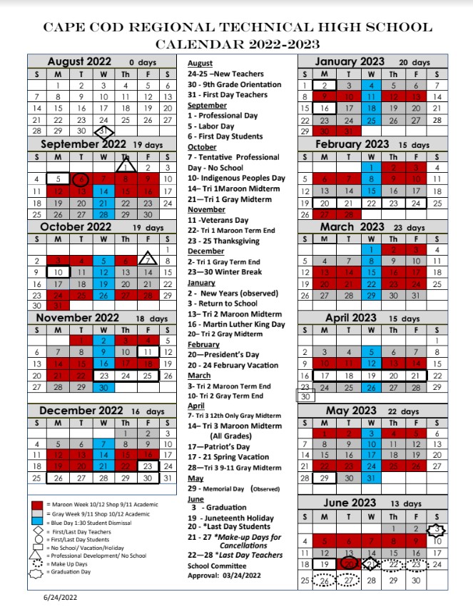 CAPE COD REGIONAL TECHNICAL HIGH SCHOOL Calendar 2021-2022. Bourne MA 02532 5087597711. Friday October 14 2022 Cape Cod Community College Officially.
